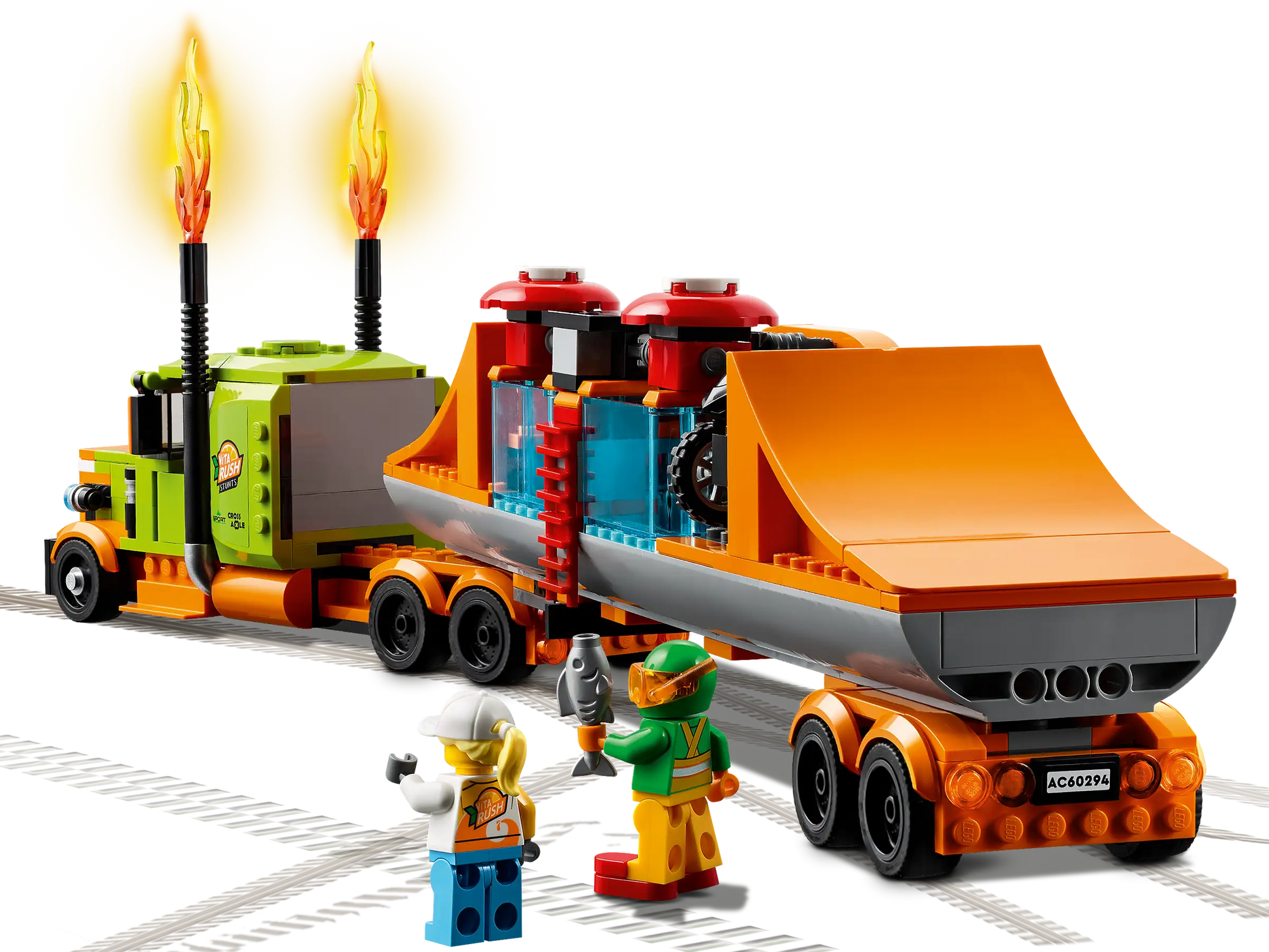 • Set the scene for action-packed play with this premium-quality LEGO® City Stunt Show Truck (60294) toy playset, including a flywheel-powered stunt bike and fun props for performing spectacular stunts.