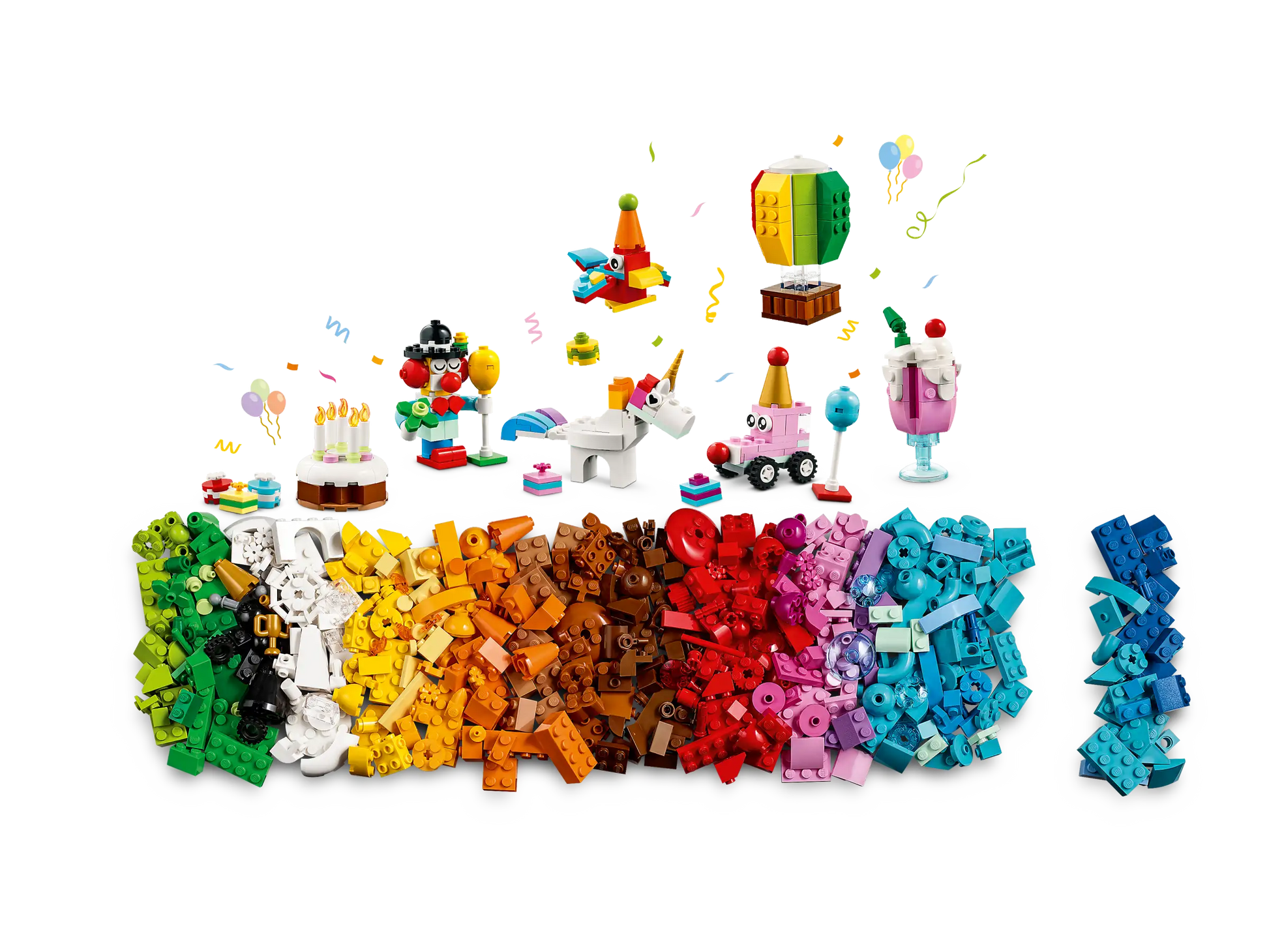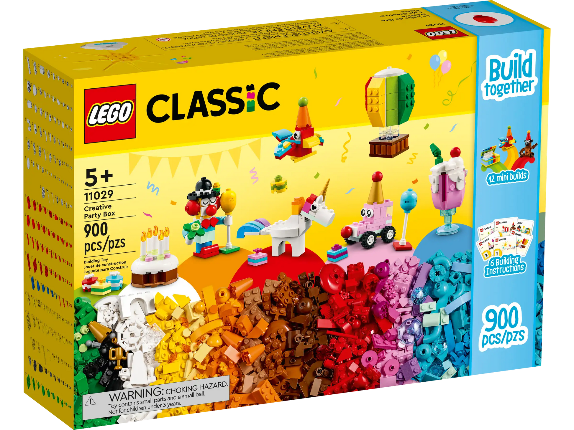 - Fun models to build together – Family and friends can share building challenges with LEGO® Classic Creative Party Box (11029), a colorful, creative building set designed with kids aged 5+ in mind